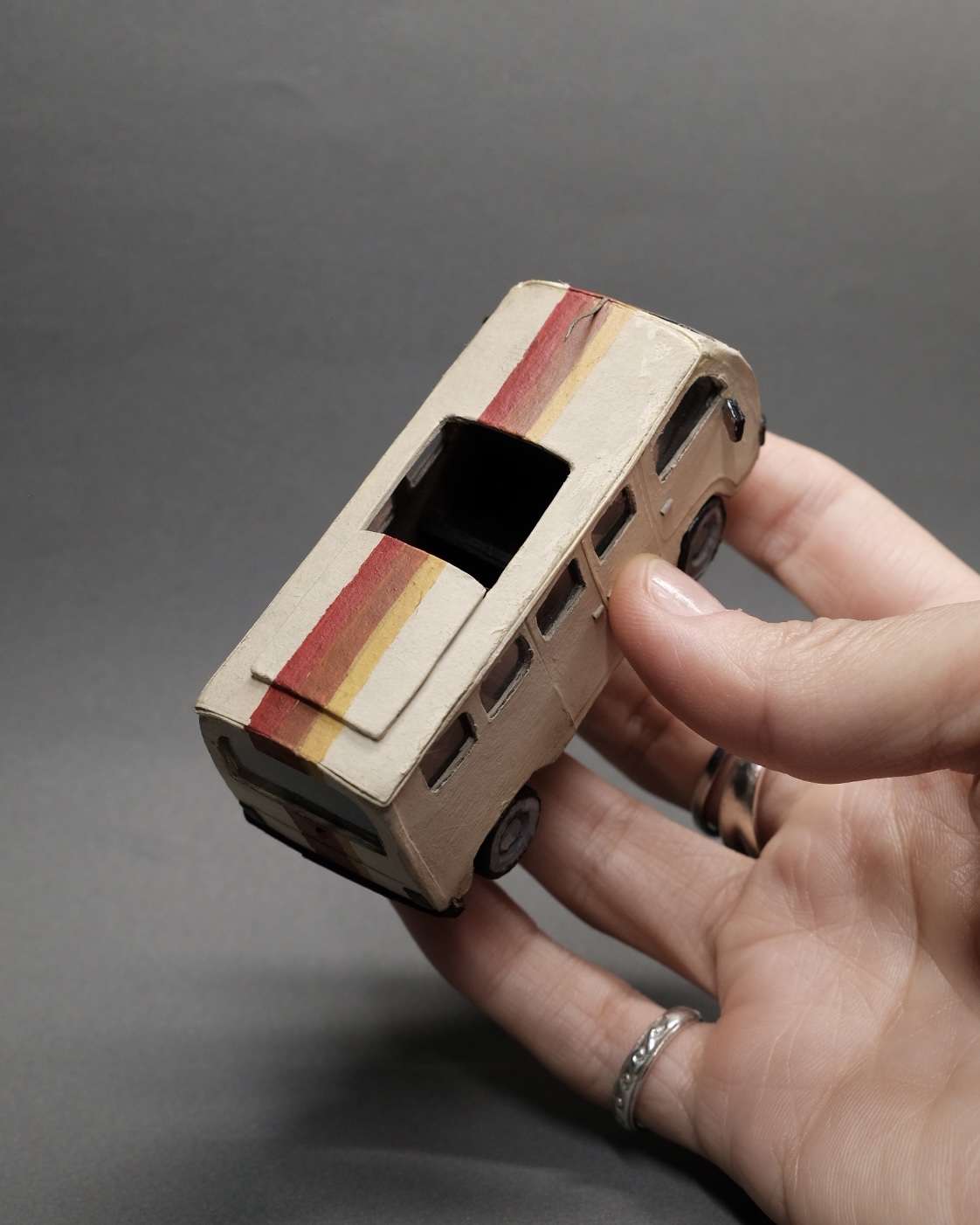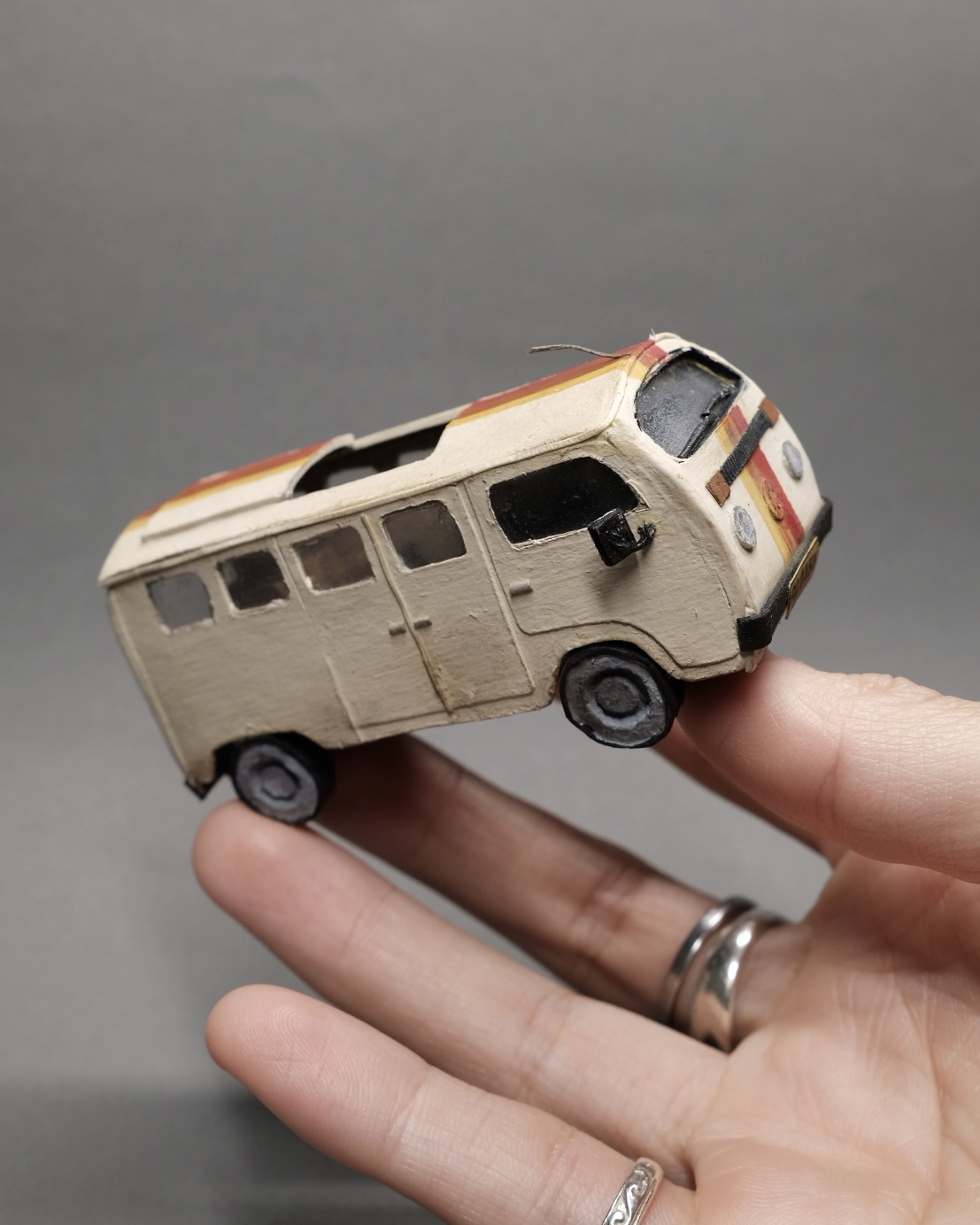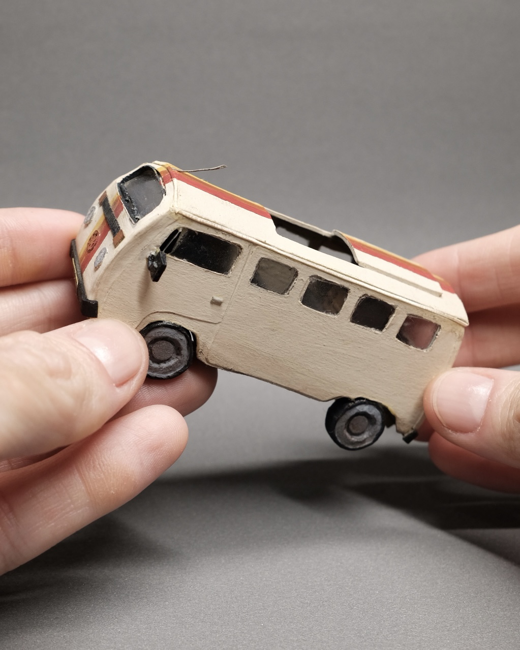 Obra criada em homenagem ao ator Armando Babaioff. A peça nasceu após conhecer a história dessa kombi que pertenceu ao pai do ator e que serviu como meio de transporte da família quando se mudaram de Fortaleza para o Rio de Janeiro. Assim, a miniatura eterniza essa memória afetiva e transforma a trajetória em obra.