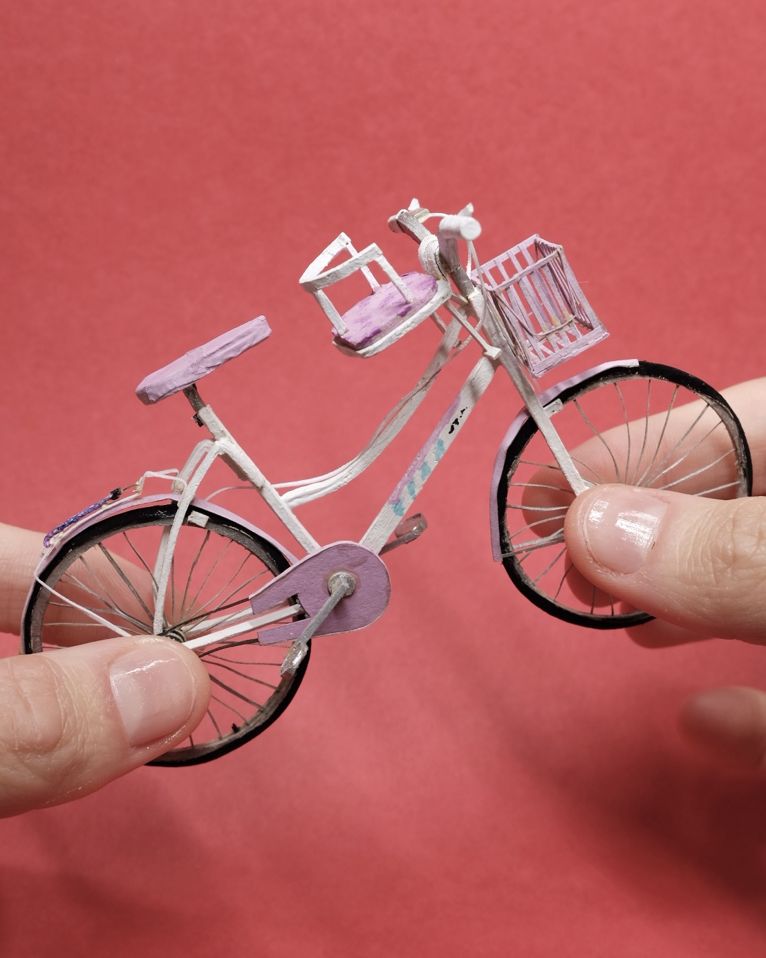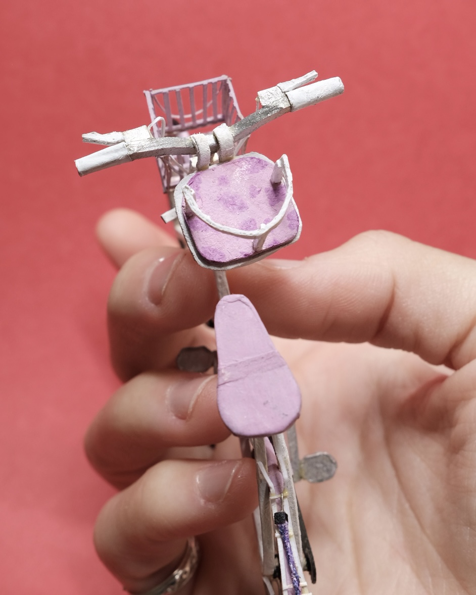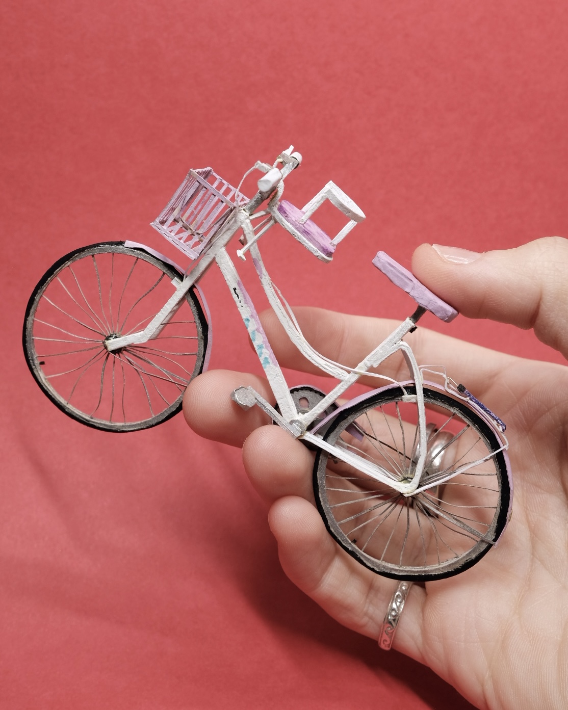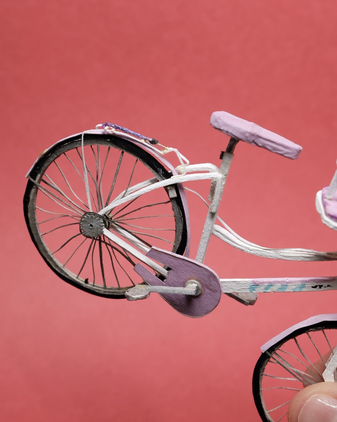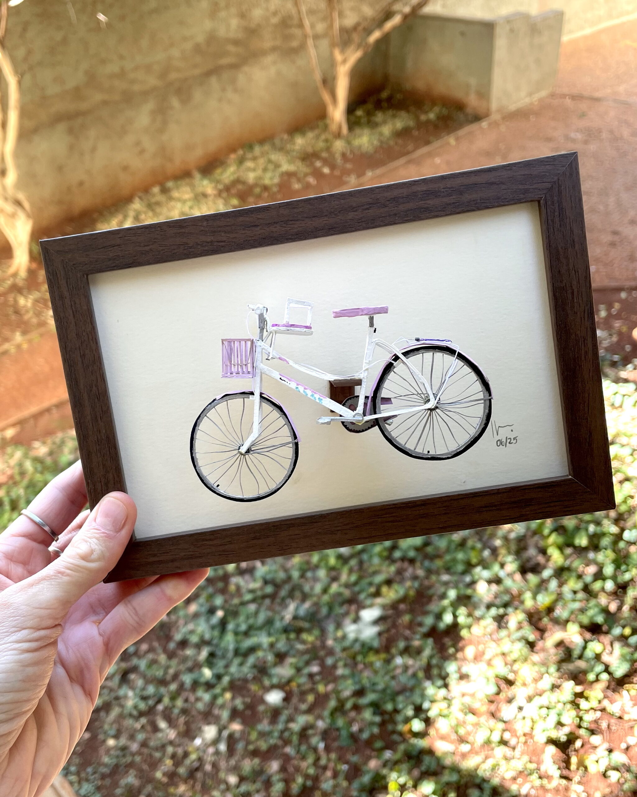 Peça inspirada na bicicleta que minha mãe usava para me levar para passear nos anos 90. Esta é a obra mais intimista que já criei, feita para presentear minha mãe e eternizar as memórias e histórias que essa réplica tem o poder de despertar.