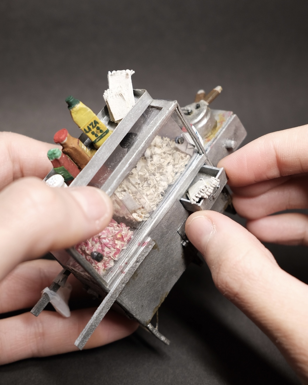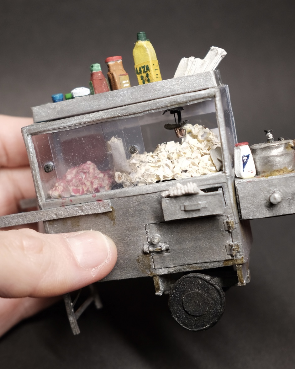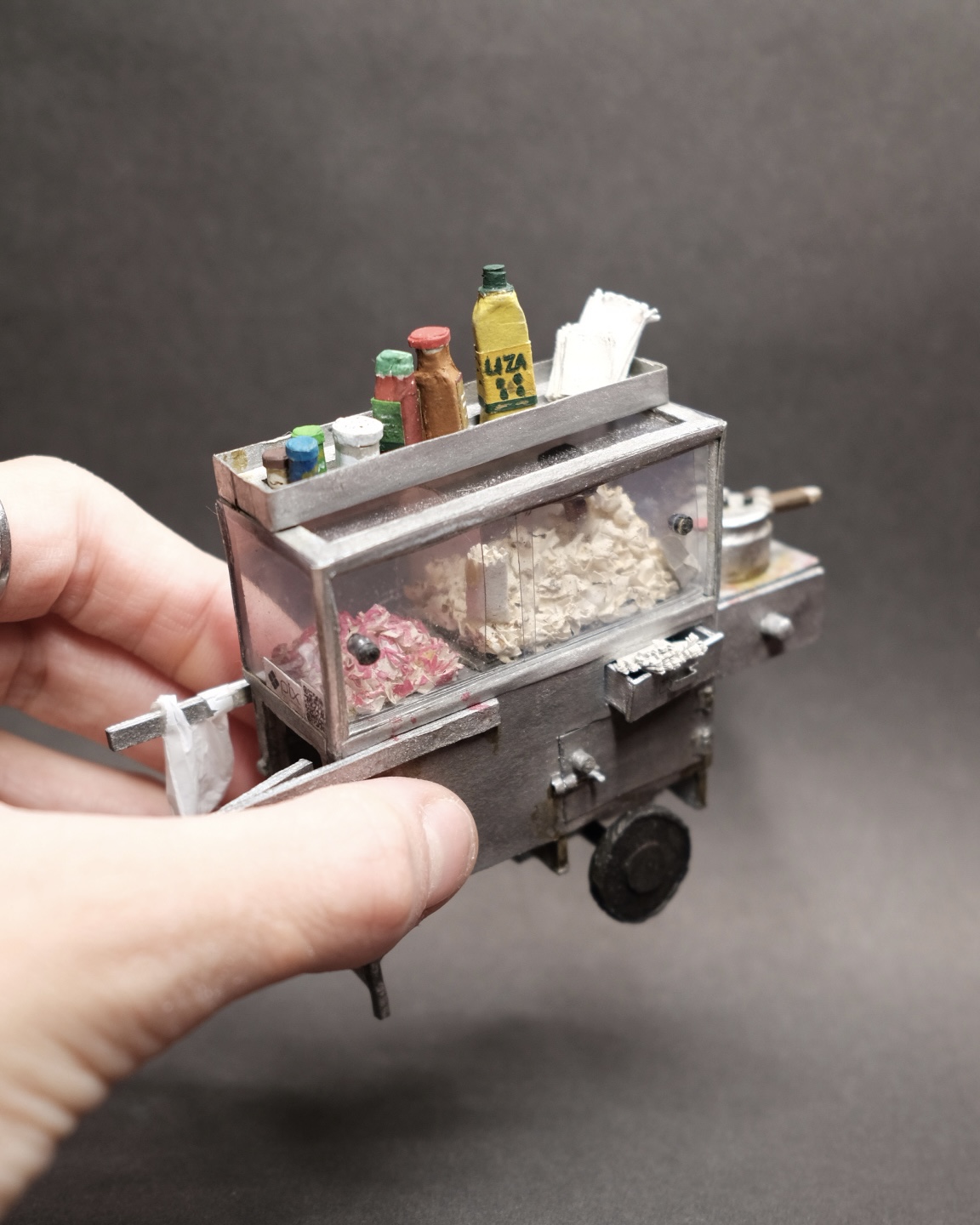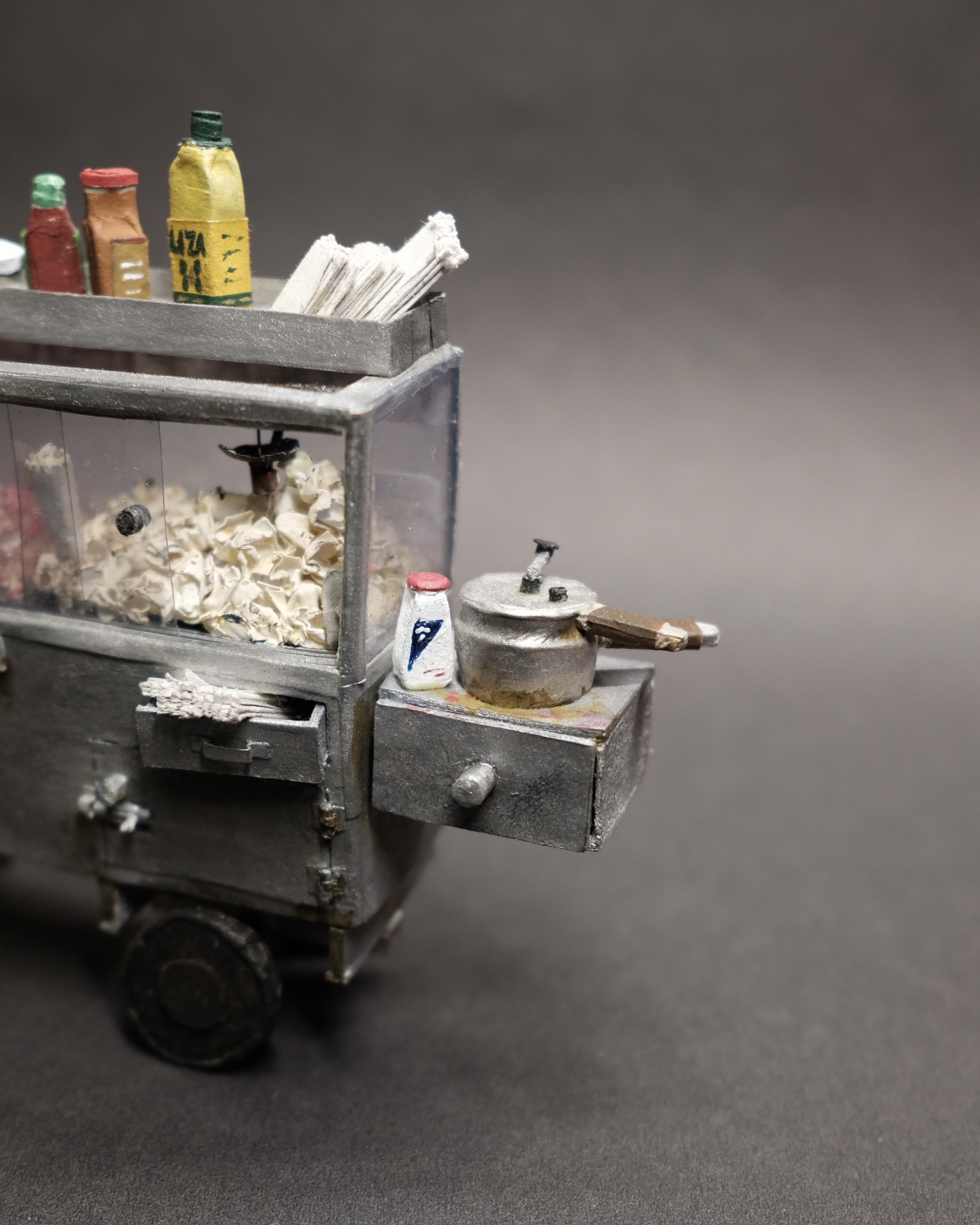 Peça desenvolvida para despertar a memória afetiva que os carrinhos de pipoca carregam e, quem sabe, até estimular o olfato de quem a observa. Esta obra é um convite para acessar lembranças e o cheirinho aconchegante que esses carrinhos espalhavam, e continuam espalhando, pelas praças e ruas do Brasil.